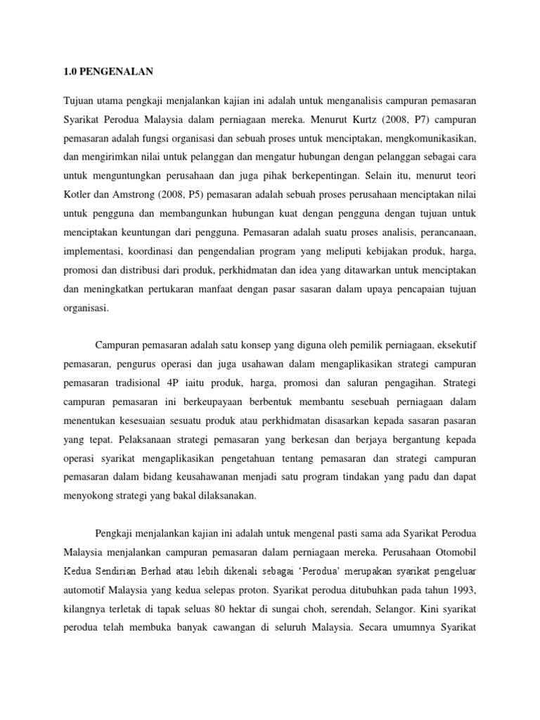 Contoh Kerja Kursus Pengajian Perniagaan Abstrak Kajian Mengenai Analisis Campuran Pemasaran Studocu